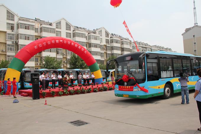 6月25日上午10:30分,我市70臺燃?xì)饪照{(diào)公交車啟用儀式在市公交公司院內(nèi)舉行,市委常委、副市長田青云、市交通運輸局局長燕乃敏以及市財政局、市交警支隊、市經(jīng)信委、市環(huán)保局、市城市管理局的相關(guān)領(lǐng)導(dǎo)參加了啟用儀式。啟用儀式由市政府副秘書長張寶華同志主持,田青云副市長作了重要講話。
