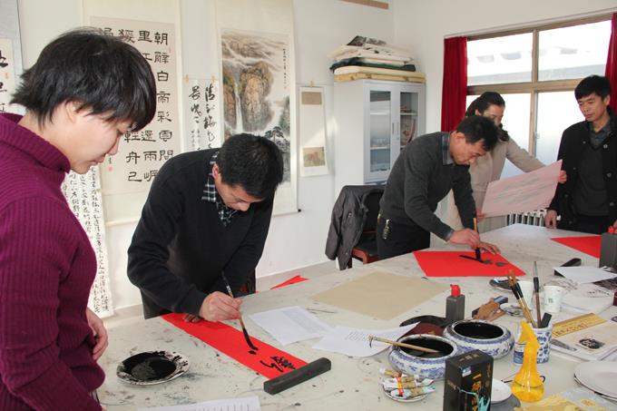 近日,市公交公司工會(huì)組織公司“書畫攝影社”開展了為2012年度“公司先進(jìn)工作者”贈(zèng)送春聯(lián)活動(dòng),號(hào)召一發(fā)出,廣大書畫攝影社成員都積極參與,書畫社社長(zhǎng)及書畫社理事親自執(zhí)筆,成員們有的裁紙,有的研磨,有的則忙著掛晾春聯(lián),一片繁忙熱鬧的迎新春景象,一幅幅泛著墨香的春聯(lián),讓過年的味道更加濃郁。春聯(lián)已于2月5日陸續(xù)送到各位先進(jìn)手中。