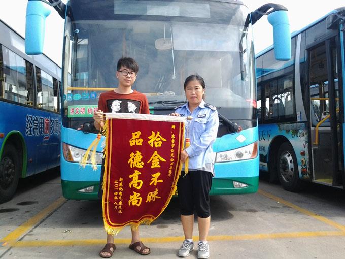 7月31日,鹿先生不慎將錢包遺漏在164路公交車上,于是急忙來到車隊尋找,該路駕駛員蘇愛軍將裝有1500元現(xiàn)金、身份證、銀行卡和工作證的錢包物歸原主,鹿先生非常感動,送來錦旗表示感謝。