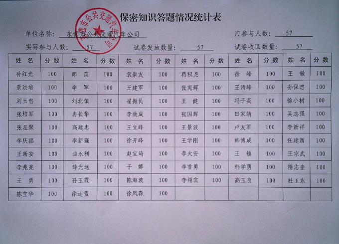 今年是新修訂保密法頒布5周年,保密法實施條例頒布1周年,也是全國“六五”保密普法教育收官之年。為進(jìn)一步增強公司管理干部保密法制觀念,提升管理干部綜合管理水平,市公交公司于6月5日至10日組織公司57名管理干部參加了全省保密知識答題活動。答題方式采取試卷答題卡方式進(jìn)行,合格率均達(dá)到了100%。