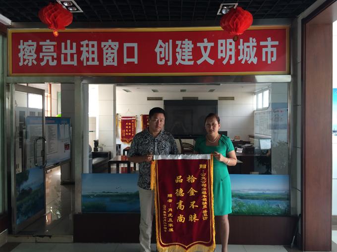 6月24日,市民肖先生拿著一面寫有“拾金不昧,品德高尚”的錦旗來到市公交出租汽車運營中心,表揚出租車駕駛員岳偽仿,夸其是一位拾金不昧的好同志。 原來,6月22日肖先生搭乘出租車從黃河鉆井到商業(yè)大廈不慎將錢包落在魯ET2306出租車上,包內有身份證、銀行卡及現金10000多元,出租車駕駛員岳偽仿發(fā)現之后立即上交運營中心,后經運營中心聯系上失主并及時歸還。為了感謝駕駛員岳偽仿拾金不昧的精神,肖先生特意送來錦旗表示感謝。