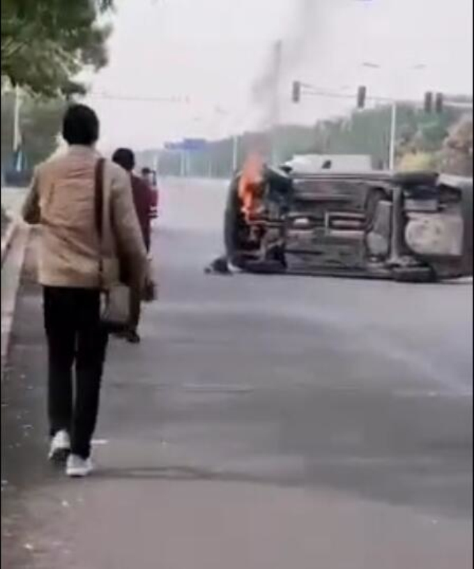 今天中午十二點(diǎn)半左右,在青島路上,一輛小轎車(chē)不知什么原因發(fā)生了側(cè)翻起火,火焰不斷向上躥,冒著濃濃黑煙。更令人揪心的是,當(dāng)時(shí)車(chē)內(nèi)還有三個(gè)人(據(jù)說(shuō)是一家三口)被困車(chē)中沒(méi)能出來(lái),隨時(shí)都有被大火吞噬的危險(xiǎn)。