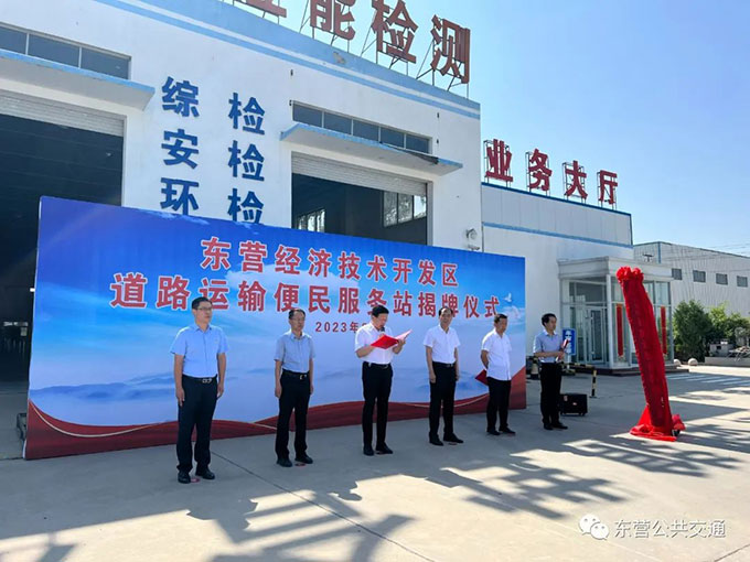 6月9日上午9時(shí),東營(yíng)經(jīng)濟(jì)技術(shù)開發(fā)區(qū)首家道路運(yùn)輸便民服務(wù)站揭牌儀式在順通汽車檢測(cè)站舉行。東營(yíng)經(jīng)濟(jì)技術(shù)開發(fā)區(qū)、市公交公司以及部分道路運(yùn)輸企業(yè)代表參加揭牌儀式。