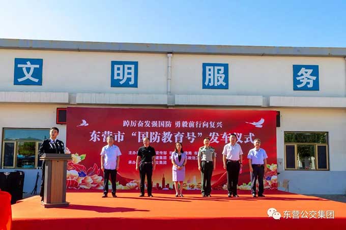 2023年9月14日上午,東營市國防教育號(hào)發(fā)車儀式在市公交集團(tuán)隆重舉行。市委宣傳部副部長邱家梅出席儀式并宣布發(fā)車,市交通運(yùn)輸局黨組成員、副局長戴景鵬致辭,東營軍分區(qū)政治工作處主任王志輝、市融媒體中心副主任趙國防、市城建集團(tuán)黨委副書記張文生、市公交集團(tuán)黨委書記趙龍等參加發(fā)車儀式。