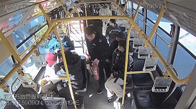 此時(shí),東營市公交集團(tuán)駕駛員袁華明師傅正好駕駛公交車經(jīng)過他沒有絲毫猶豫將公交車停在安全區(qū)域并迅速起身一把拎起車上滅火器飛奔向冒煙的三輪車第一個(gè)沖到現(xiàn)場。