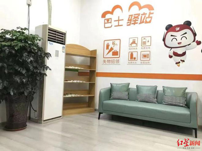 7月9日,紅星新聞?dòng)浾邚某啥脊患瘓F(tuán)獲悉,為提升服務(wù)質(zhì)量,延伸公交場站服務(wù)功能,近日,成都公交首個(gè)“巴士驛站”在金沙公交樞紐站正式亮相。“巴士驛站”內(nèi)可提供失物招領(lǐng)、換乘咨詢等多項(xiàng)出行服務(wù),沙發(fā)、電腦、空調(diào)、飲水機(jī)、微波爐、冰箱、充電插座等便民服務(wù)設(shè)施一應(yīng)俱全,供乘客免費(fèi)使用。