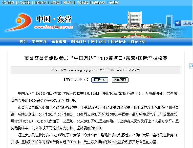 2012年5月21日東營市政府網(wǎng)站報道