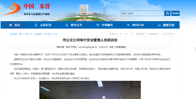 2019年1月30日東營市政府網(wǎng)站報道