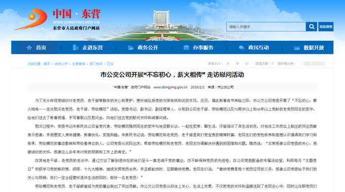 2019年2月11日東營市政府網(wǎng)站報道